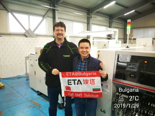 Customers in Bulgaria are professional SMT PCBA manufacturers. Since 2013, they have cooperated with ETA team. Customers have purchased 6 fully automatic SMT production lines from ETA. The amount of cooperation exceeds 2 million euros. ETA engineers help customers plan factories, install production lines and train operation. They provide professional after-sales service for customers. Customers recognize the ETA team.